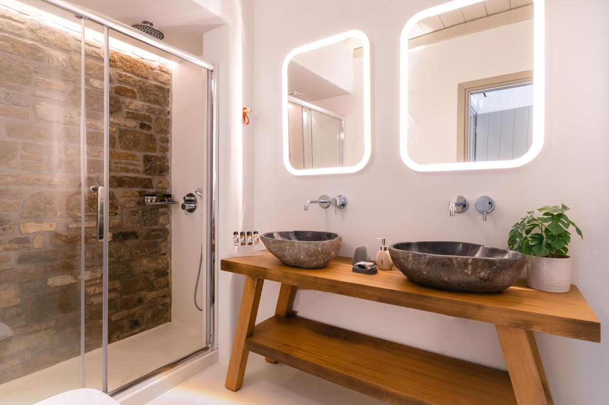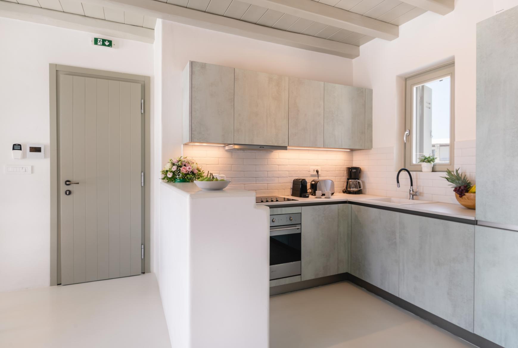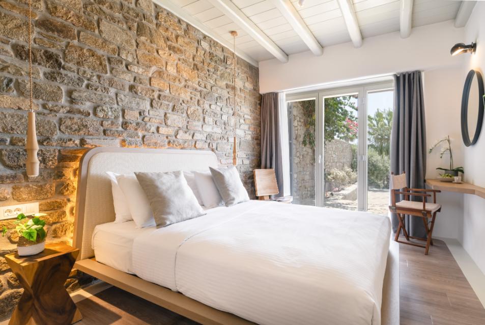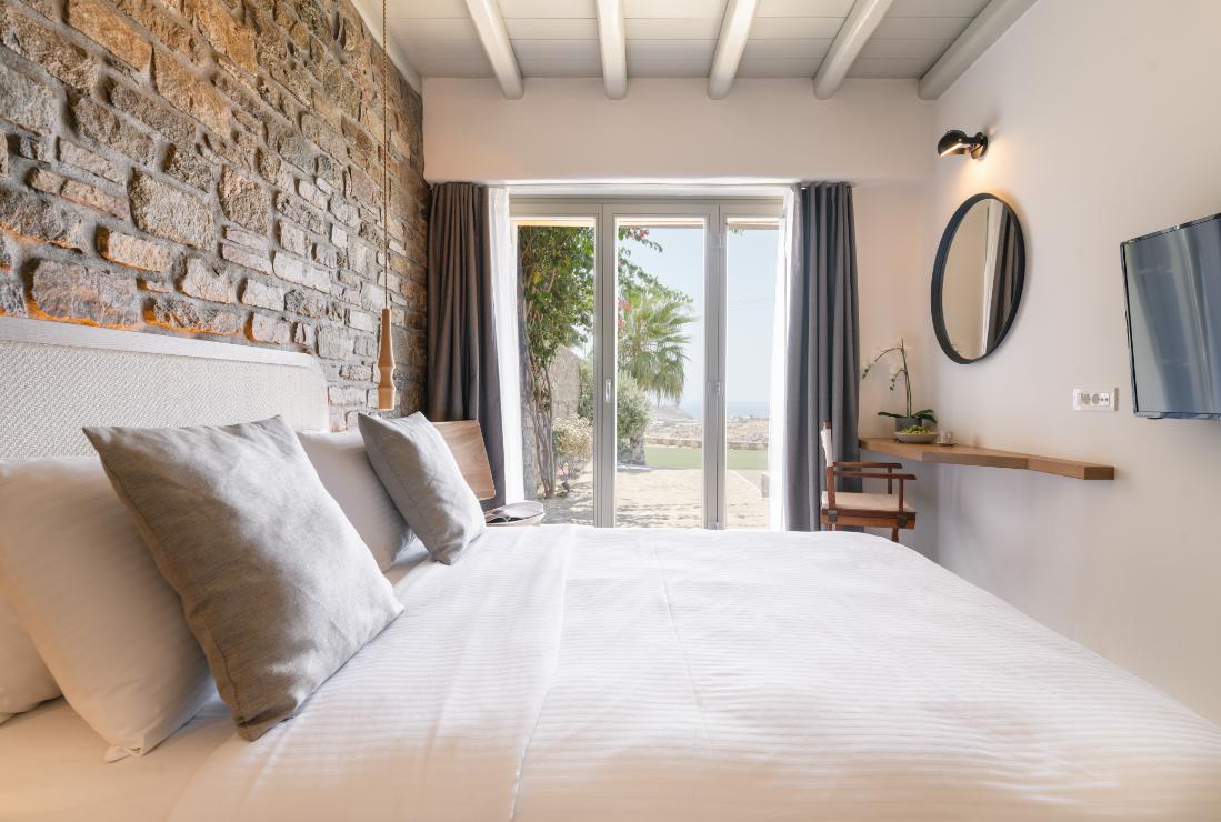 Tucked away in Kalafatis, you’re near the action but far from the commotion. You can easily access Mykonos Town’s cobblestone streets, shops, and well-known eateries, allowing you to experience the island’s vibrancy whenever the mood strikes.