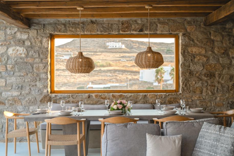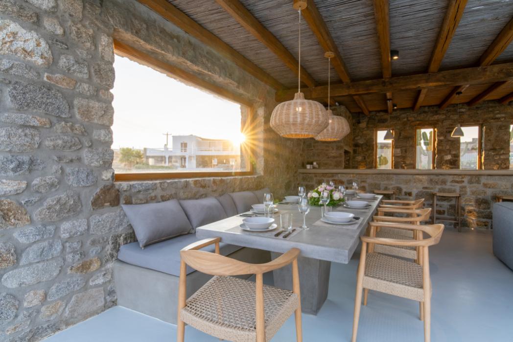 Ornos is a trendy area renowned for its elegant beach clubs and fine dining.