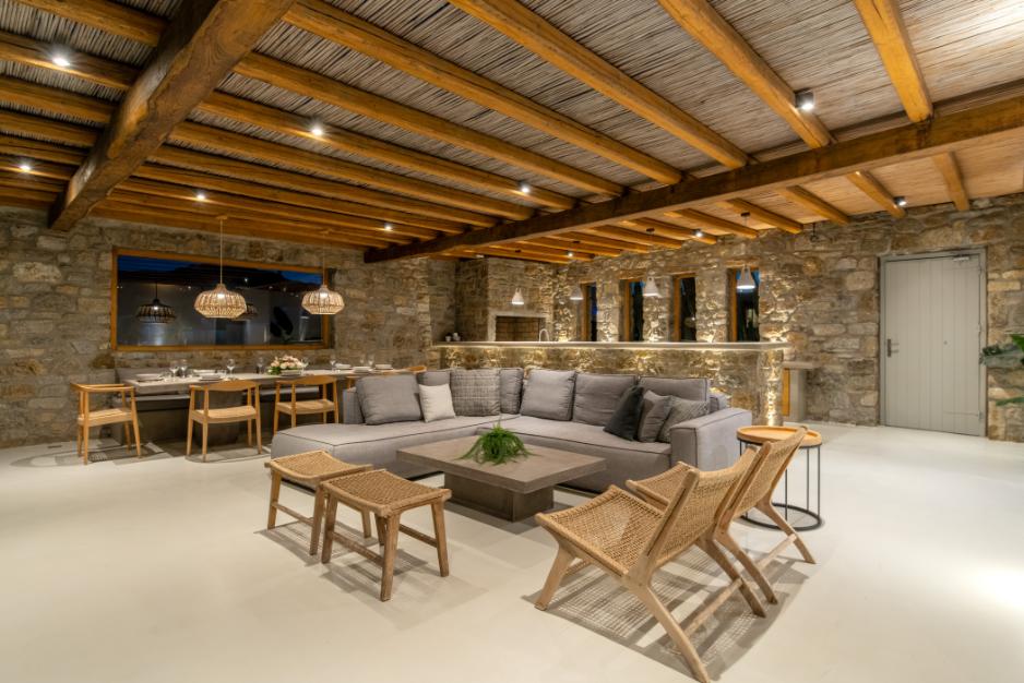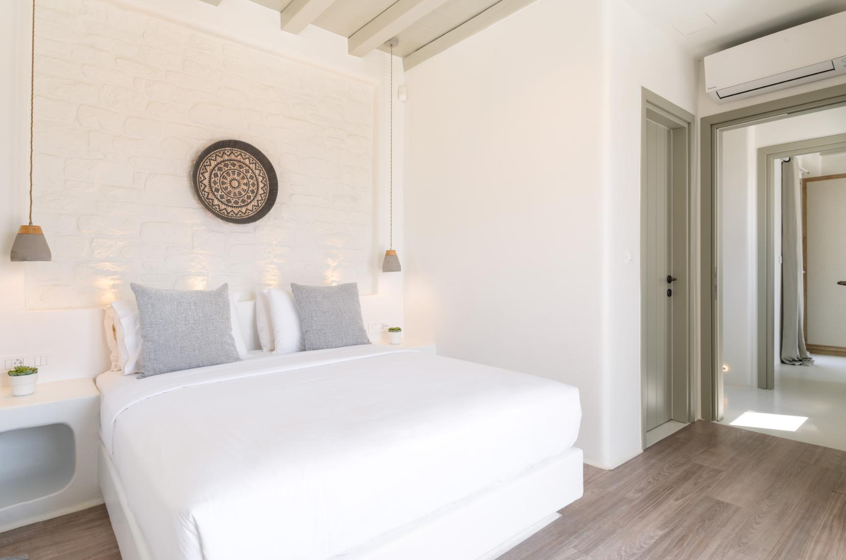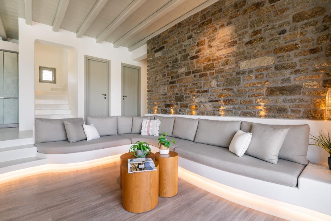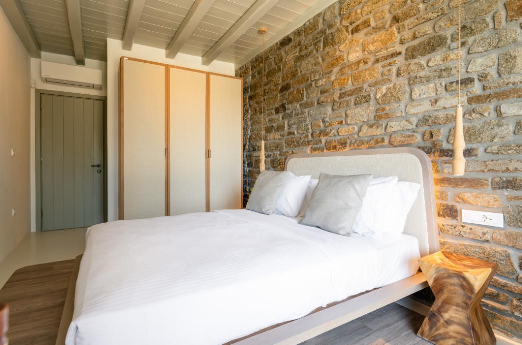 The tone is established by the spacious indoor-outdoor areas, carefully chosen furniture, and clean, whitewashed lines. From spacious living areas to expansive terraces that frame expansive Aegean views, every element has been designed for comfort and elegance.