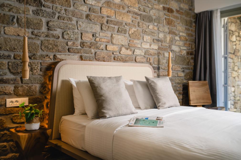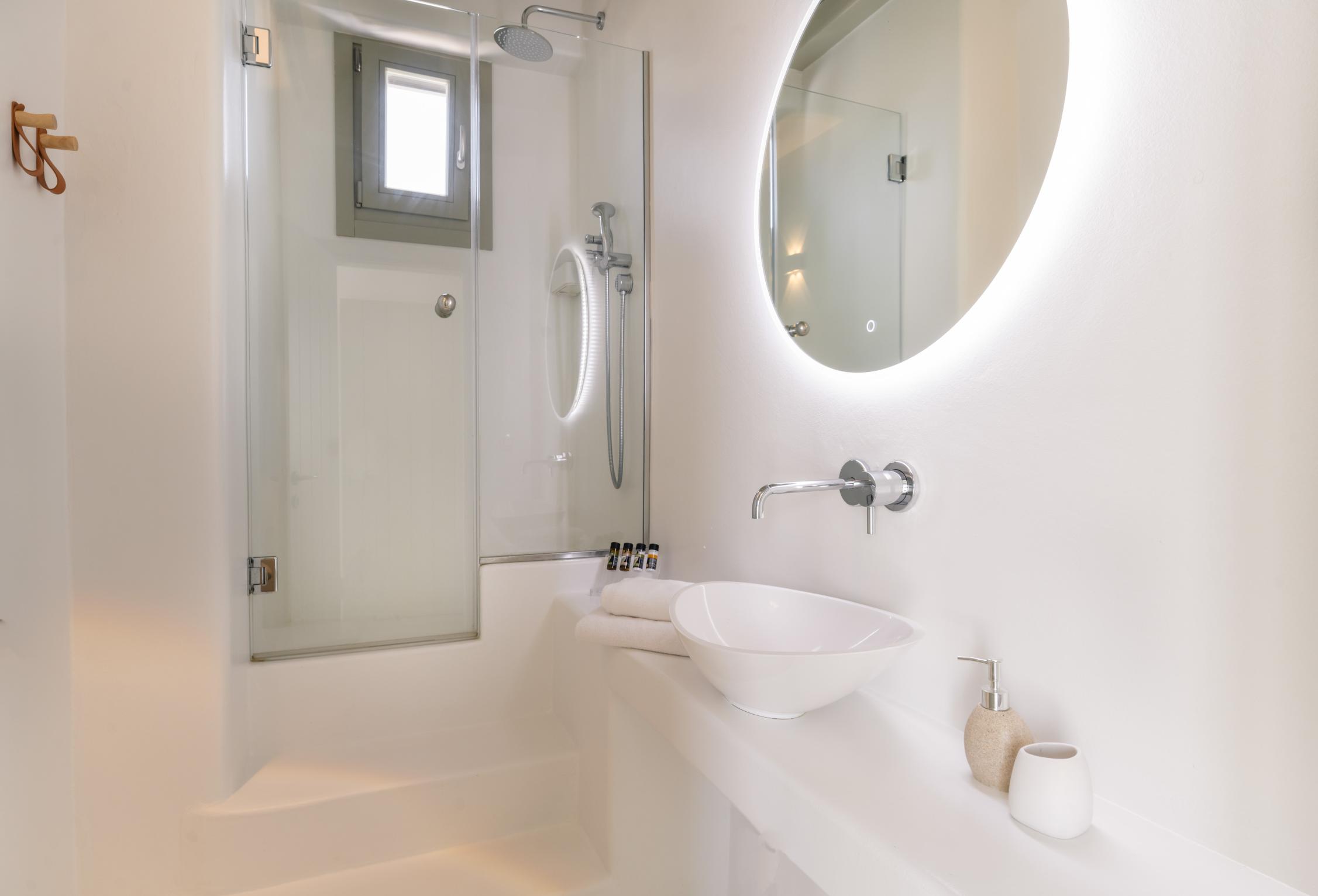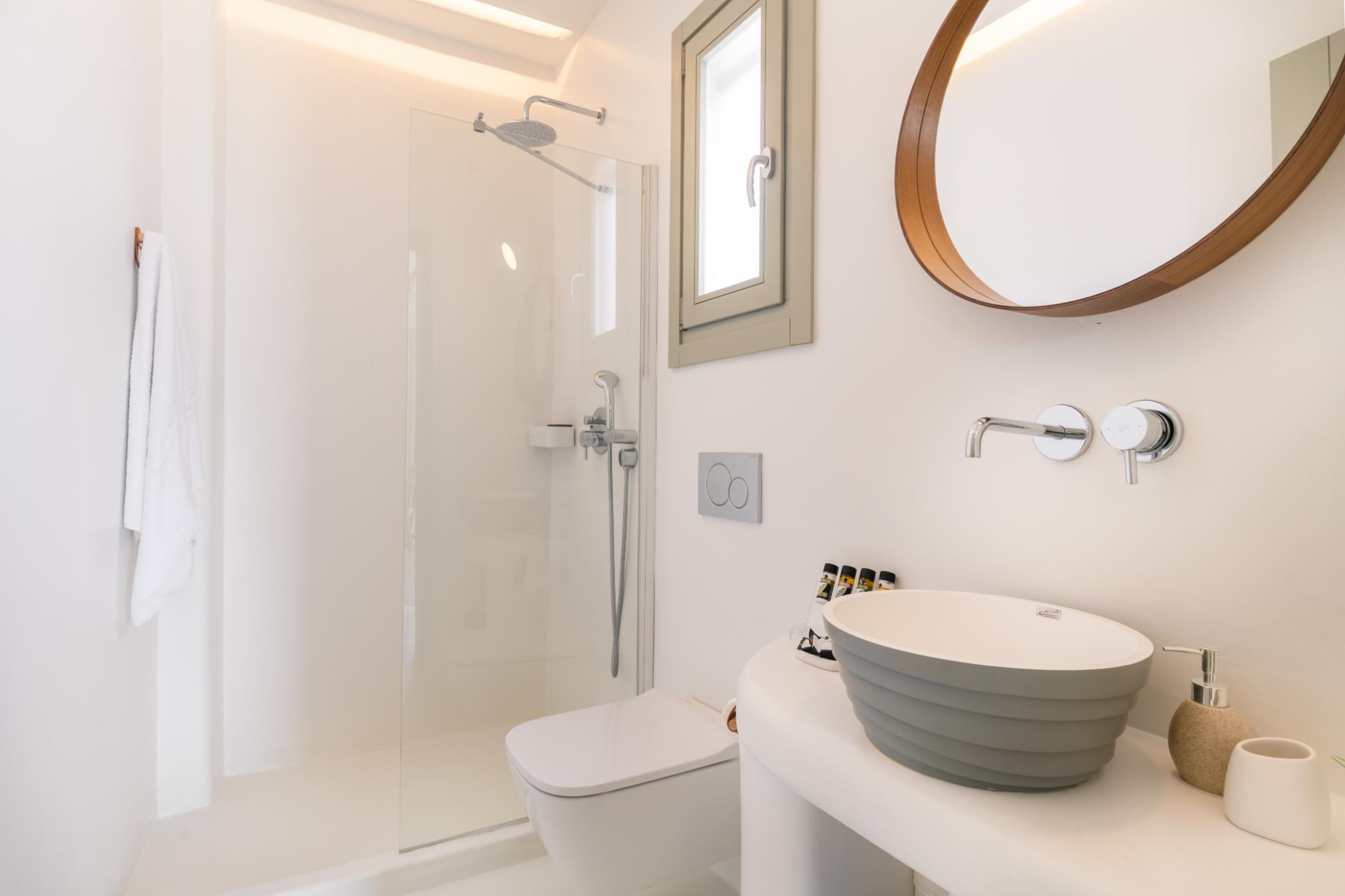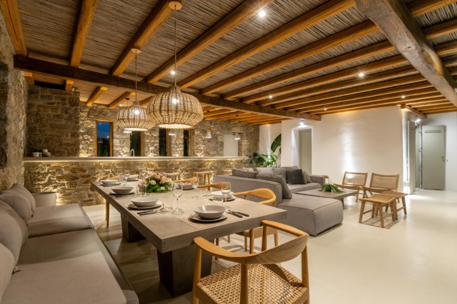 The tone is established by the spacious indoor-outdoor areas, carefully chosen furniture, and clean, whitewashed lines. From spacious living areas to expansive terraces that frame expansive Aegean views, every element has been designed for comfort and elegance.
