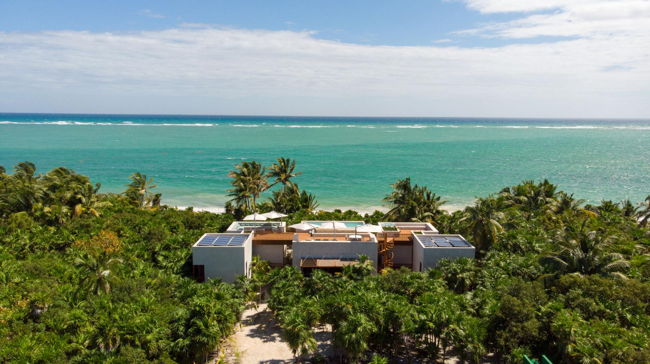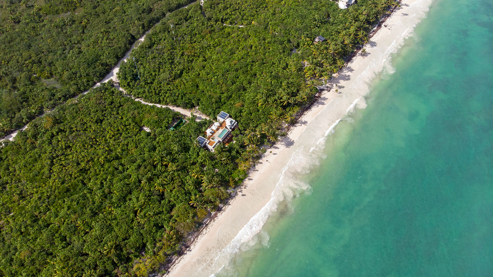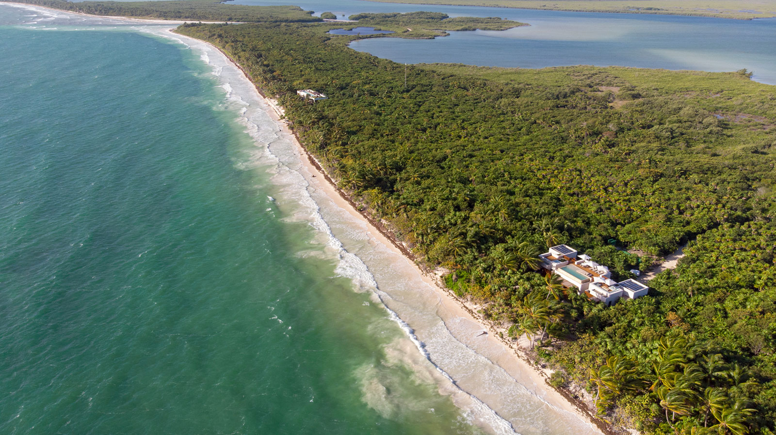 The calm of the Caribbean pulls a silver line across the beach as dawn breaks; the palms change, the pelicans skim the shallows, and the jungle behind the house slowly awakens, as though it remembers that this is an ancient world. The villa, which is located deep within the Sian Ka’an Biosphere, has two master suites with views of the ocean that open to the sunrise, expansive living areas that blend into the terraces, and a relaxed, barefoot rhythm that makes the hours fly by.