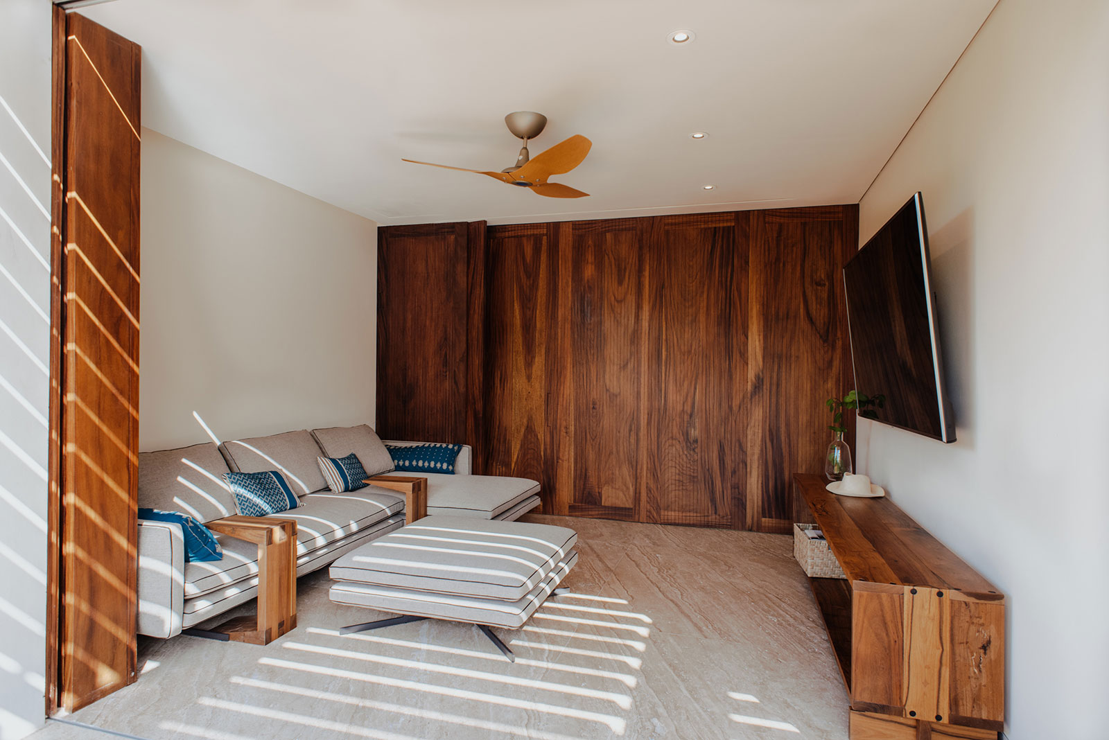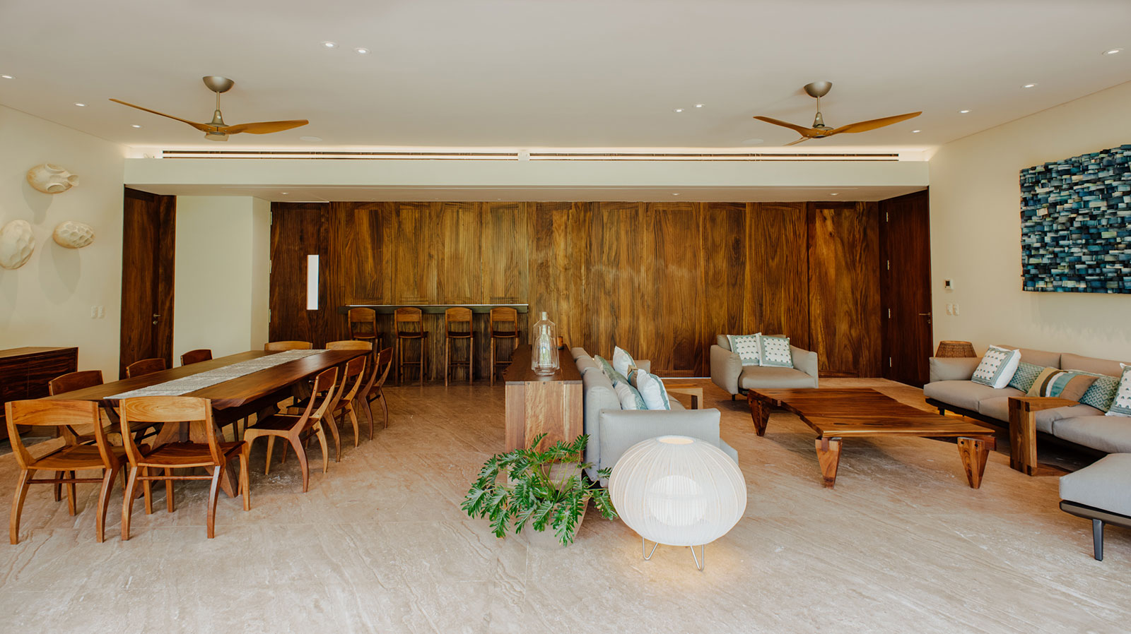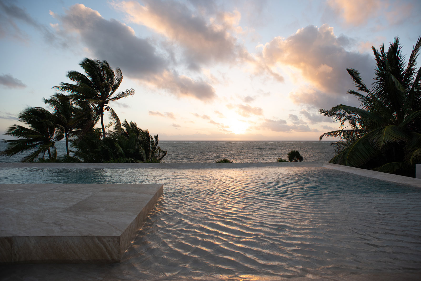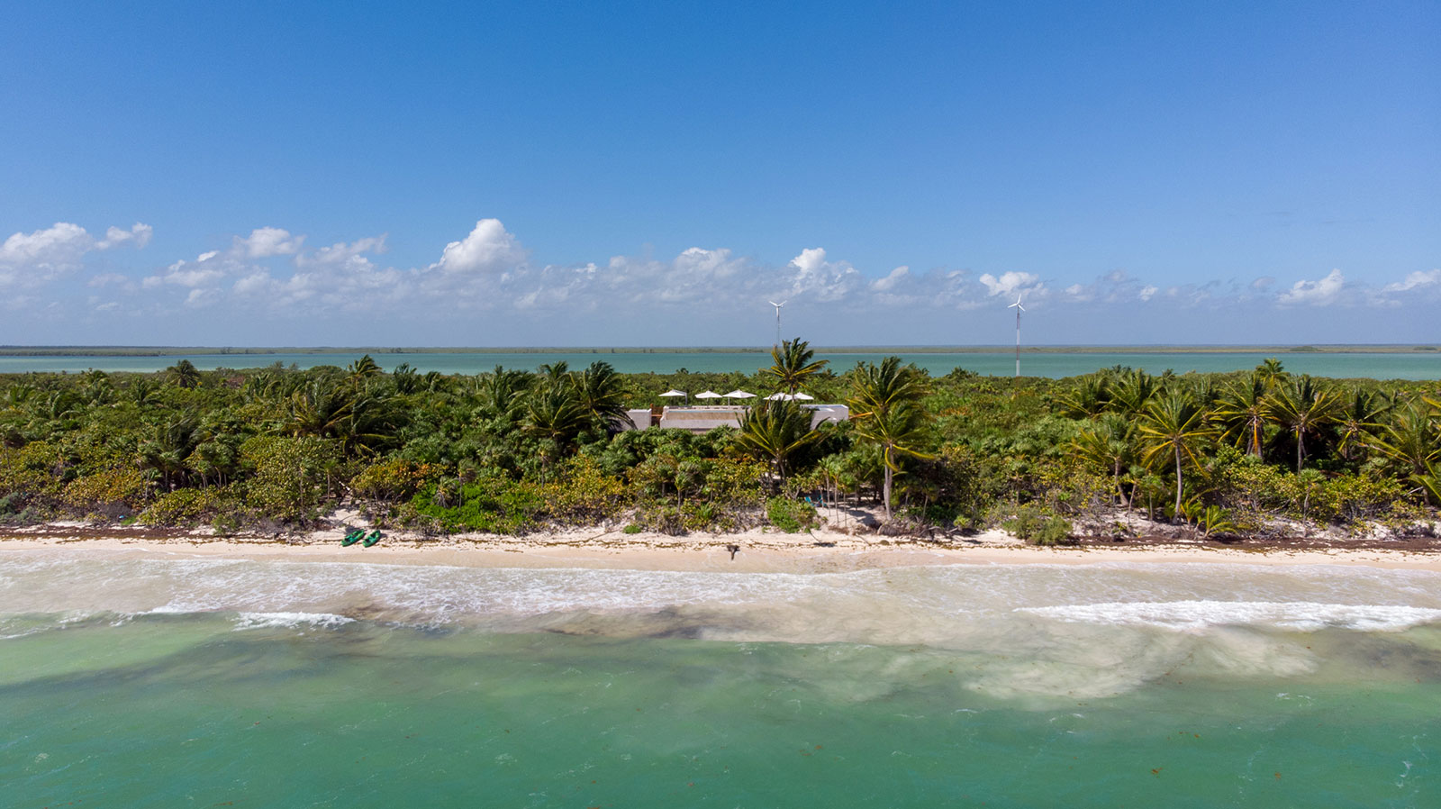 The calm of the Caribbean pulls a silver line across the beach as dawn breaks; the palms change, the pelicans skim the shallows, and the jungle behind the house slowly awakens, as though it remembers that this is an ancient world. The villa, which is located deep within the Sian Ka’an Biosphere, has two master suites with views of the ocean that open to the sunrise, expansive living areas that blend into the terraces, and a relaxed, barefoot rhythm that makes the hours fly by.