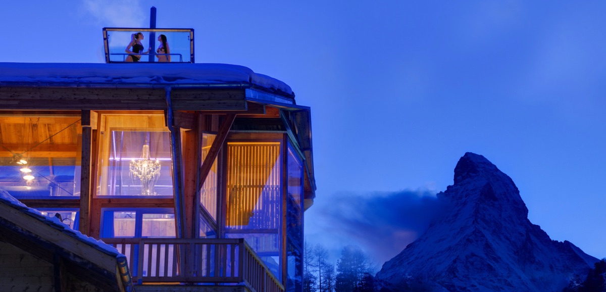 Chalet Vulcain II masterfully combines the traditional with the modern, with its peaked roof, wood-paneled ceilings and walls of windows looking out on the village and the Matterhorn.