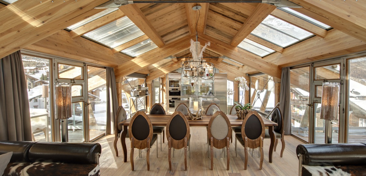 This chalet is based on an old Valais 1940s house, this Zermatt luxury chalet has been expanded with a contemporary addition to comprise bright, open living spaces and five bedrooms.