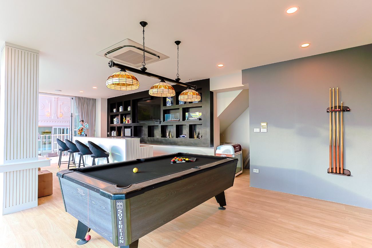 Three pools with jacuzzi, cinema room, games room (pool, chess, board games), fully equipped gym, smart TVs and Bluetooth speakers in all bedrooms, daily-replenished minibars, air-conditioning throughout. Complimentary airport transfers plus use of snorkelling gear, kayaks, paddleboards, and bicycles.
