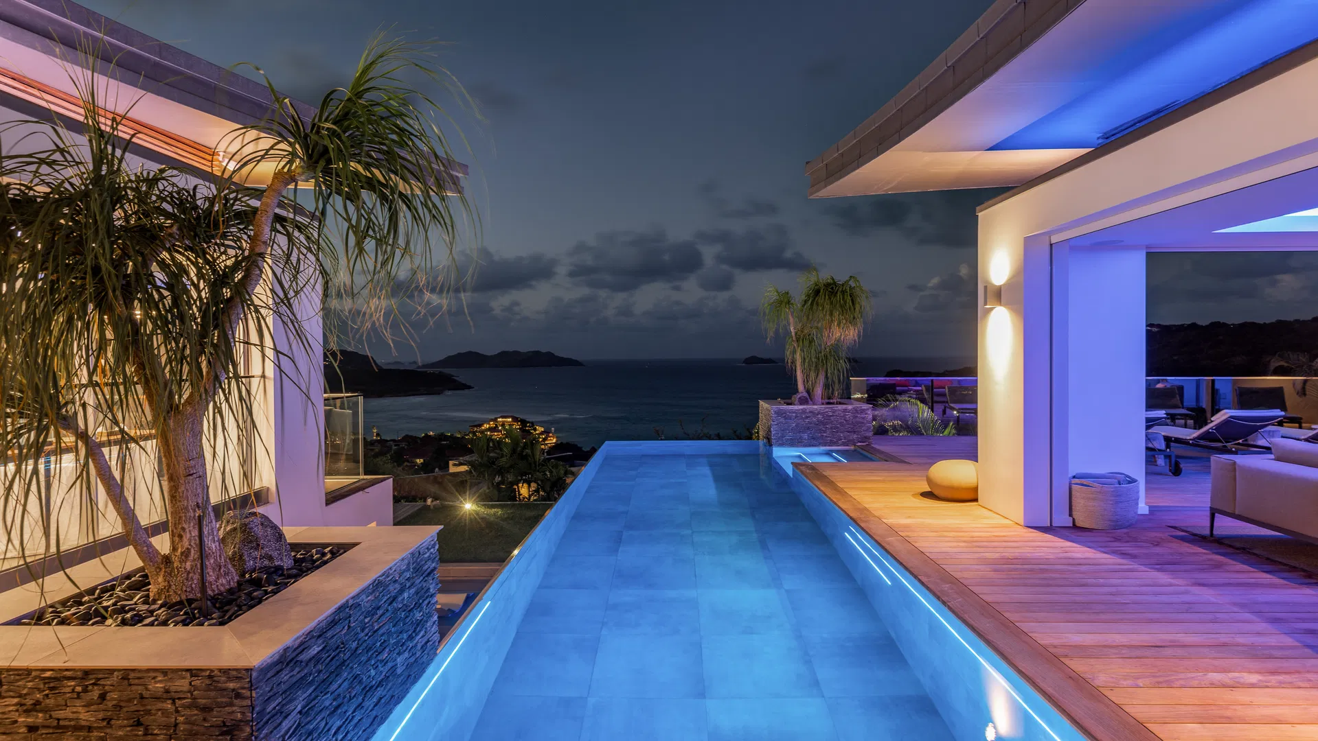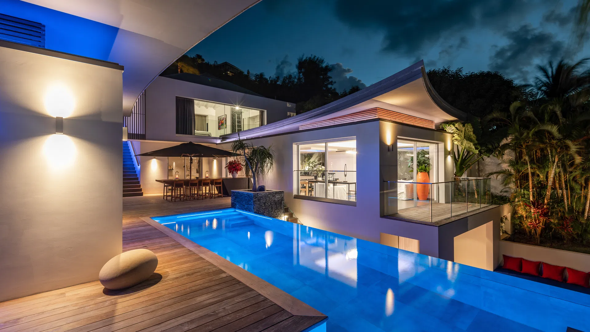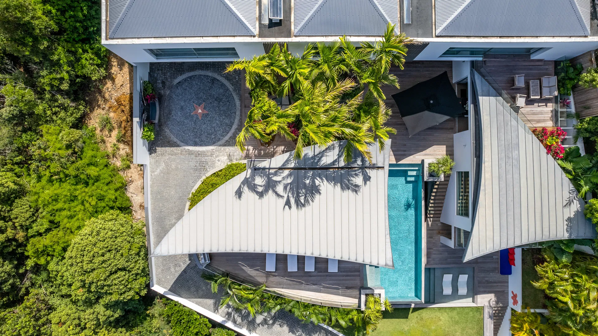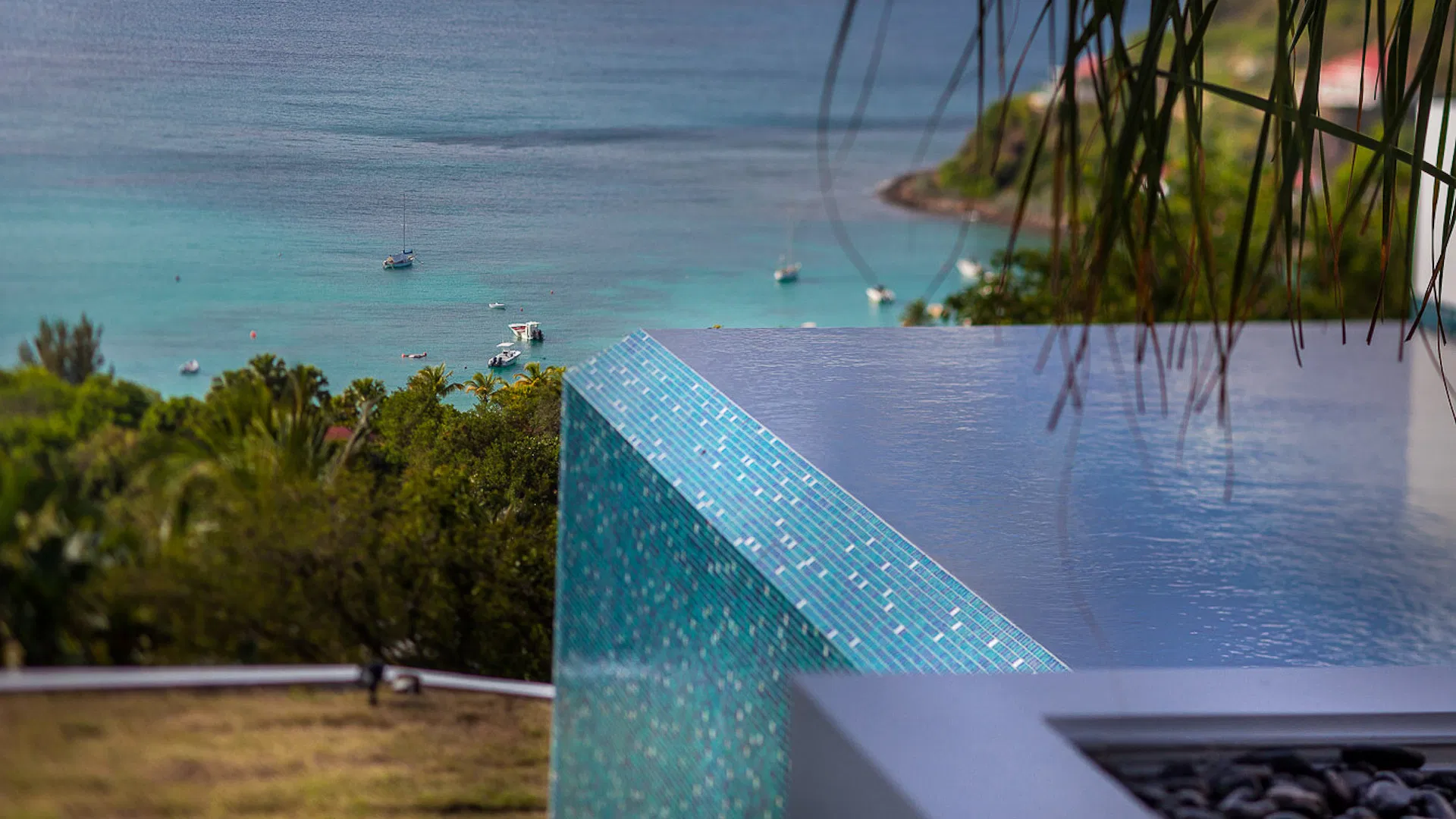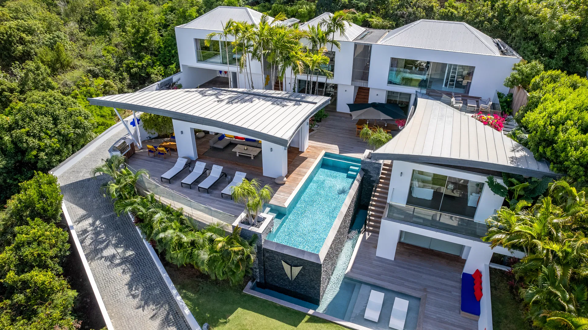 Villa Wings is unique among St Barts villas due to its wing-shaped architecture, unique two-level terrace concept with an infinity pool and a second shallow pool, and bedroom arrangement that offers genuine seclusion while keeping each suite facing the ocean.