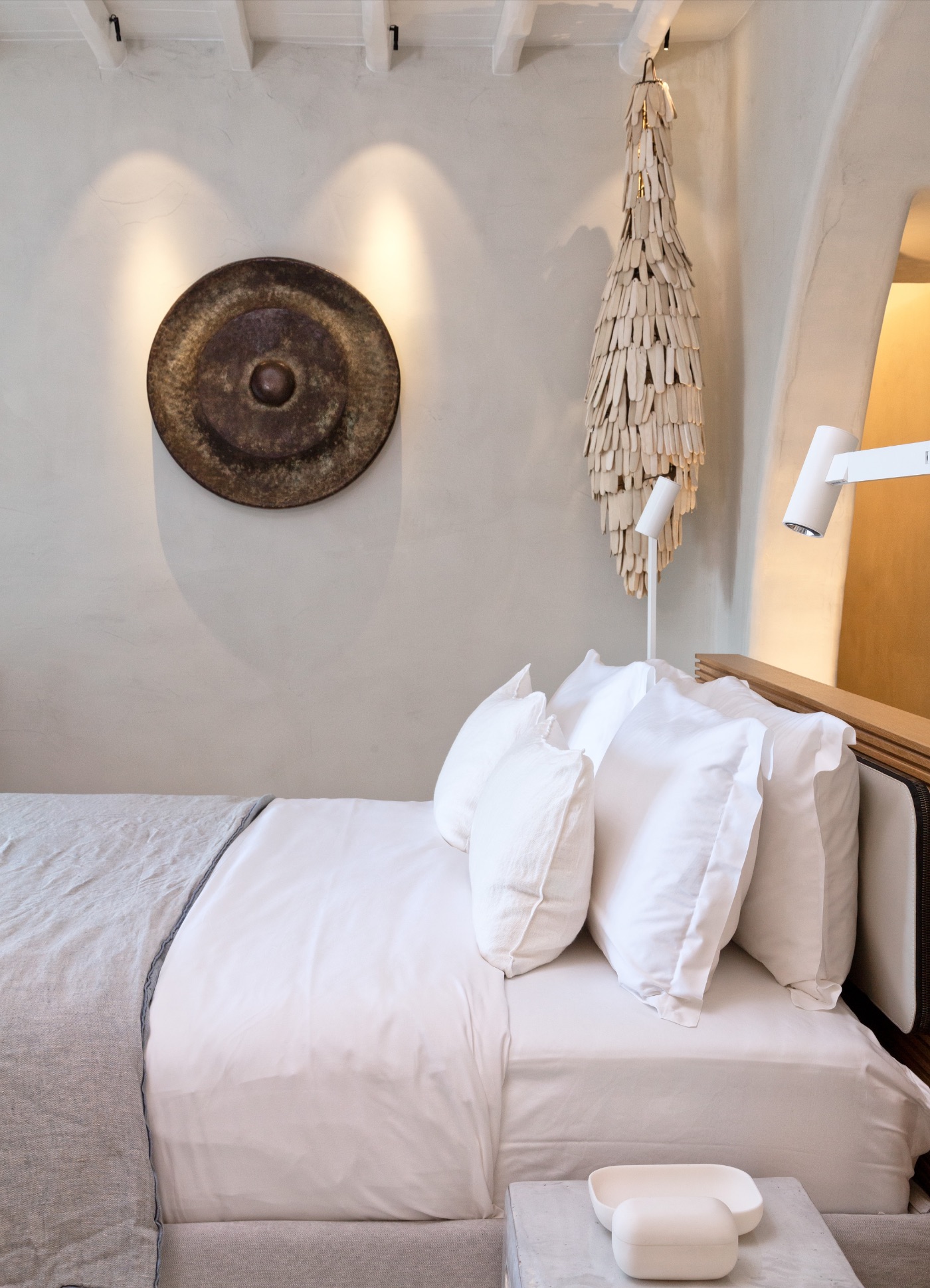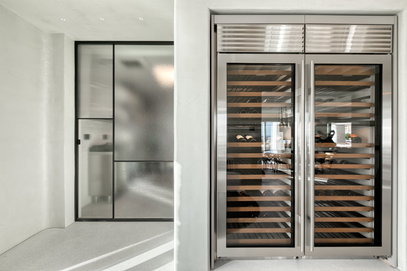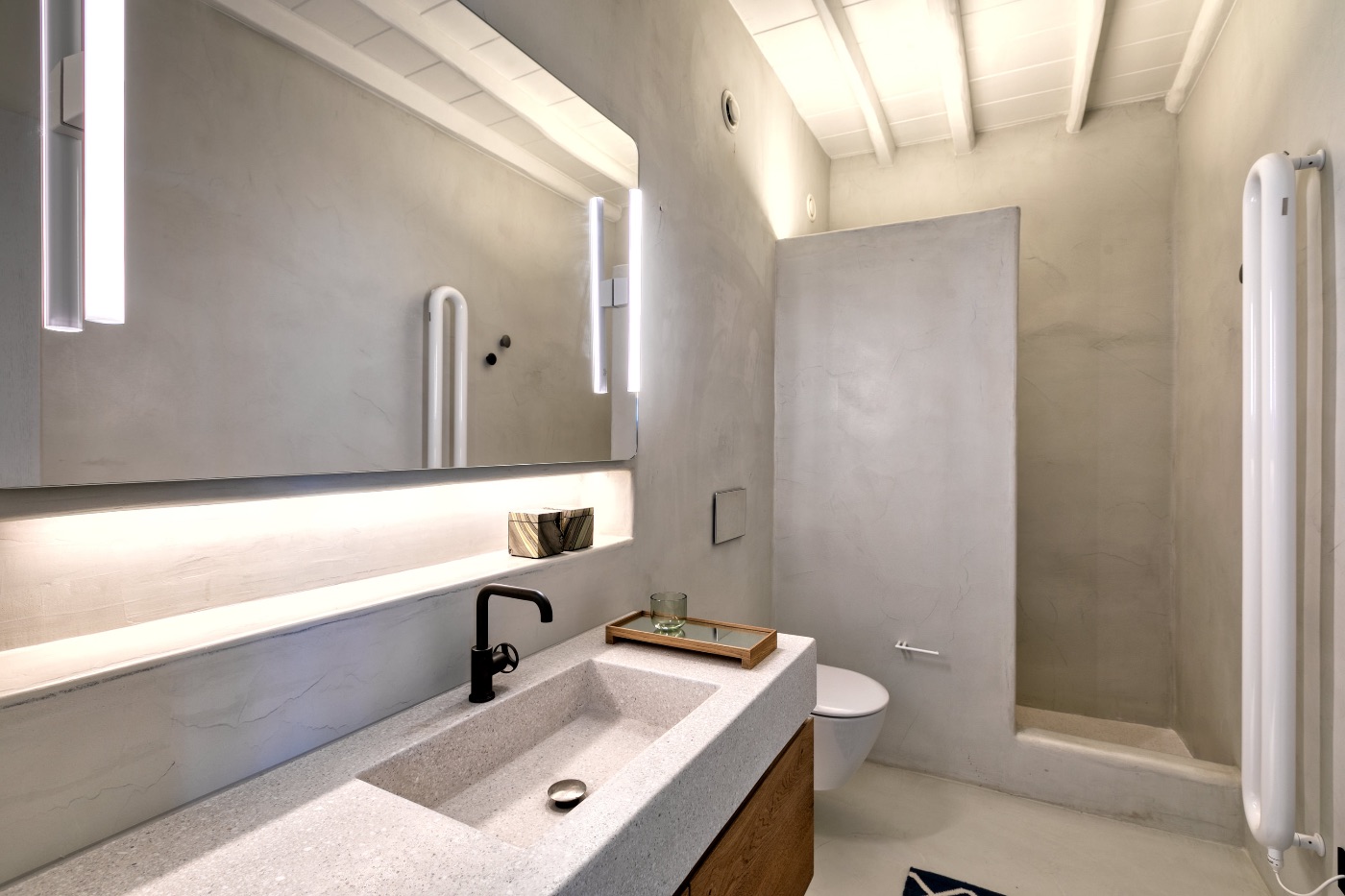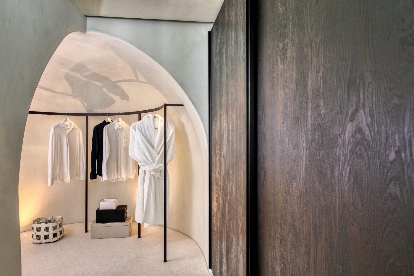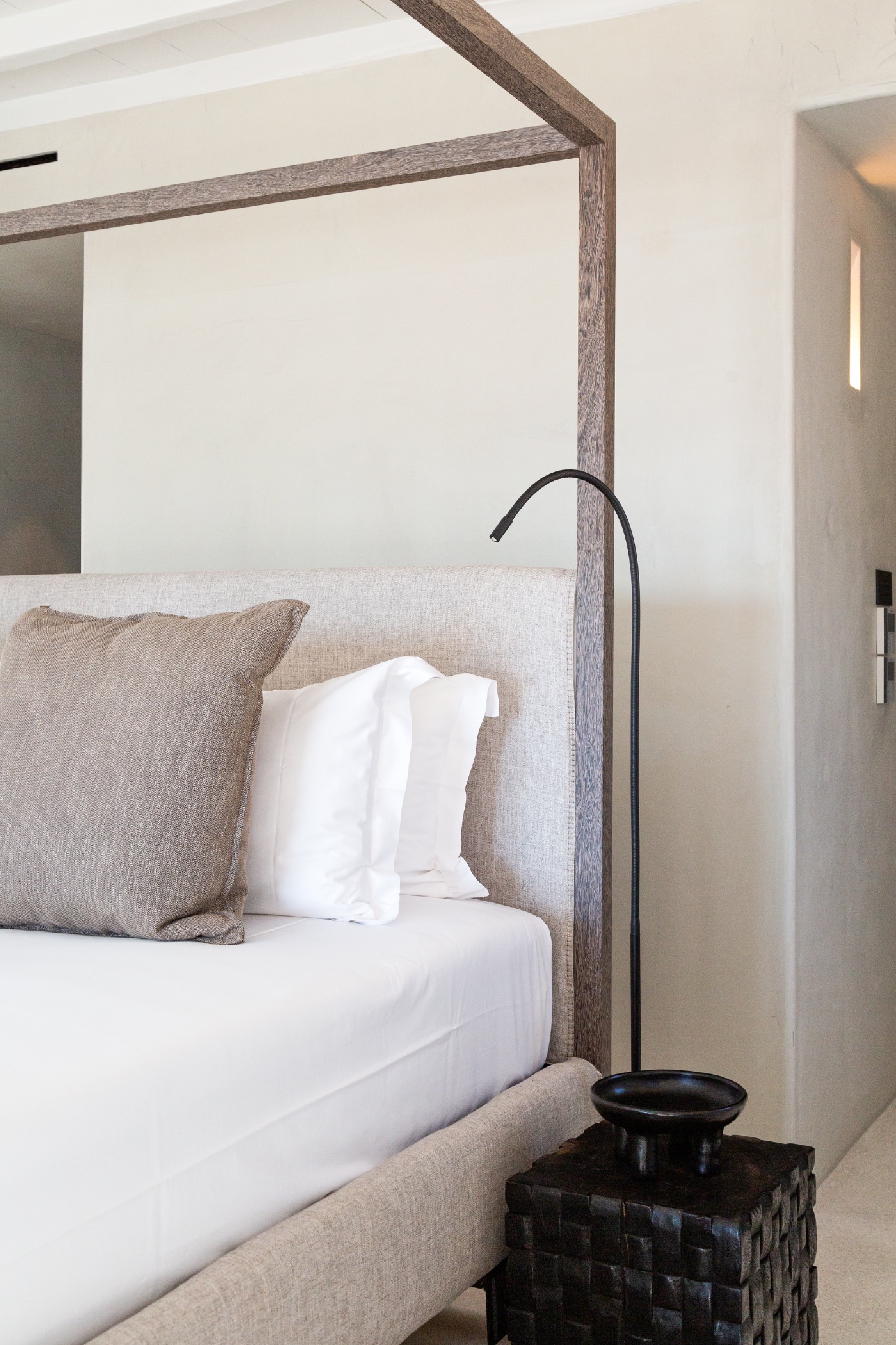 Villa Zeus expands on multiple levels. Guests enter from the highest level which hosts the parking area and leads to the upper level with the Hammam and gym facilities and the entrance to the first guest room (“Syros”) which features a mezzanine with an en suite double bedroom and a spacious wooden terrace with a built-in Jacuzzi (may be accessed from outside the bedroom too). The next level down (main/pool level) hosts the main outdoor area with the Infinity pool, the pool bar, a pool bathroom facility (shower and toilet) and the 2 main accommodation units on the left and right of the pool. The first unit hosts the kitchen and main living and dining area on the ground floor and 1 double bedroom (“Naxos”) on the first floor. Behind this unit is the Chef’s kitchen and staff facilities. The second unit hosts 2 double bedrooms (“Tinos” and “Andros”, optionally interconnected). Descending to the lower level, guests may find the bio garden on the left and enter a cave style passage on the right which exits to the guest houses area. This area hosts 5 independent guest houses with independent entrances (“Yaros”, “Baos”, “Rhenia”, “Delos”, “Paros”), a kitchenette for the guests of this level and the chapel. All guest houses are double except “Baos” which is single. In addition, “Delos” and “Rhenia” are optionally interconnected while “Rhenia” may also be set as a quadruple with the use of 2 roll-away pull-out beds. All units enjoy unobstructed sea/sunset views.
