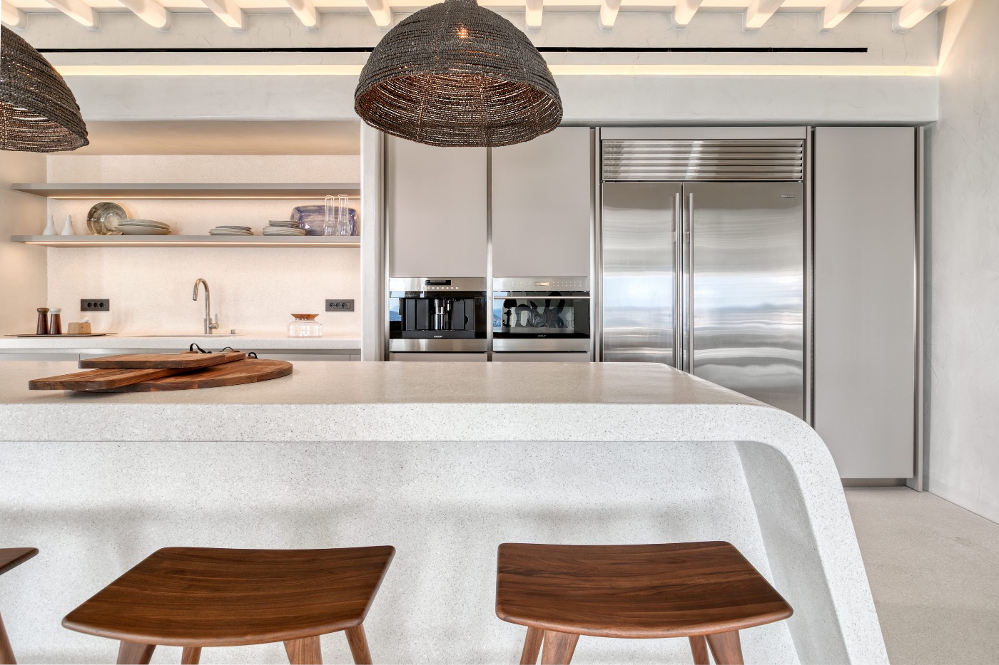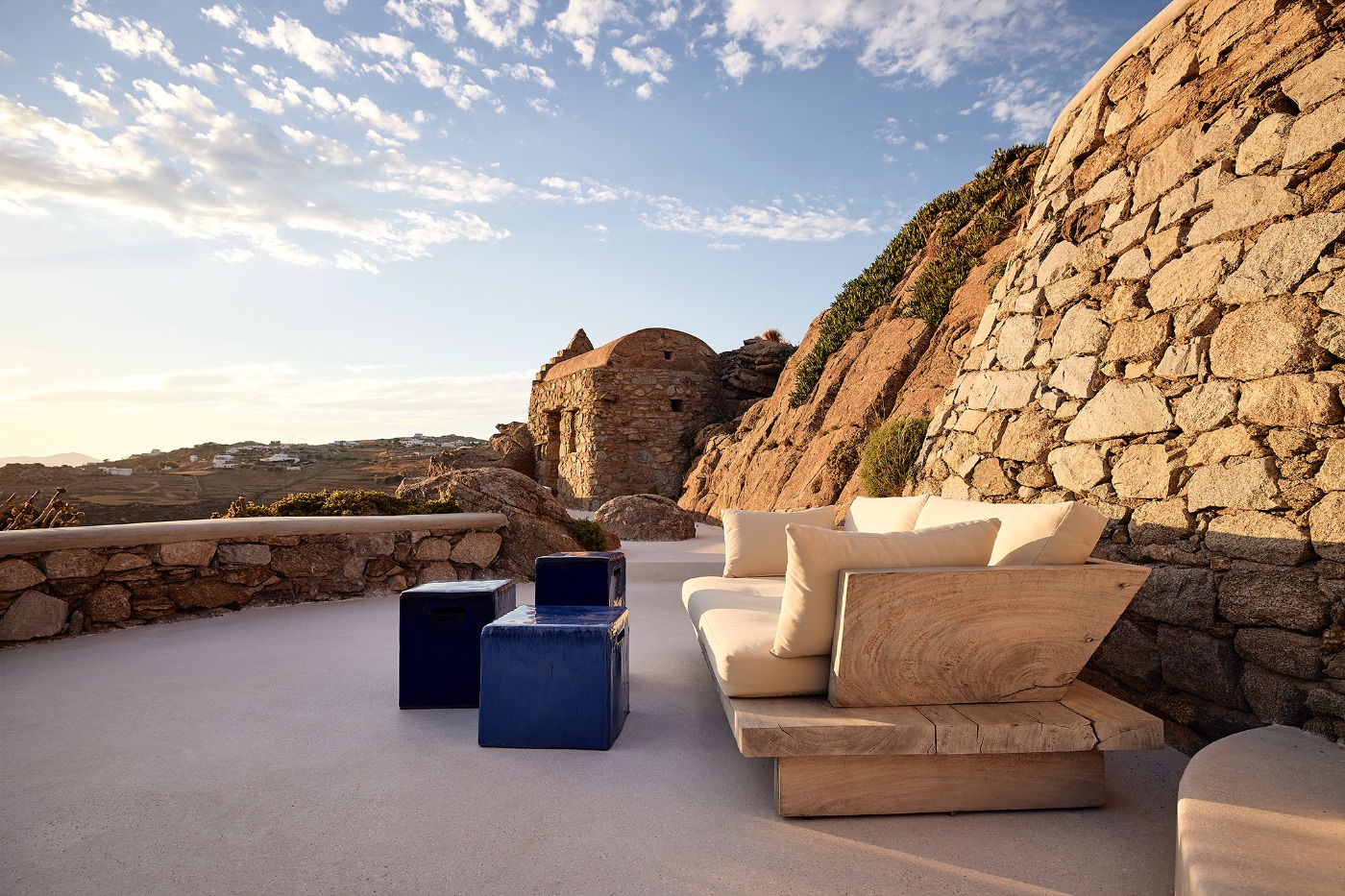 Villa Zeus is a majestic property, situated in the prime Agia Sofia area and overlooking the Aegean Sea, conveniently close to Mykonos town and the new port. It consists of 9 en suite bedrooms and a maid’s room (staff in-house) and offers an outdoor area with an Infinity Pool with spectacular panoramic sunset views. The especially elegant interior, which is filled with unique and exceptionally high-end pieces of furniture, is beautifully decorated with warm earthly colors and wooden details. The property stretches on multiple levels and features a Hammam unit, a gym area, a picturesque chapel, a Chef’s kitchen and a bio garden.