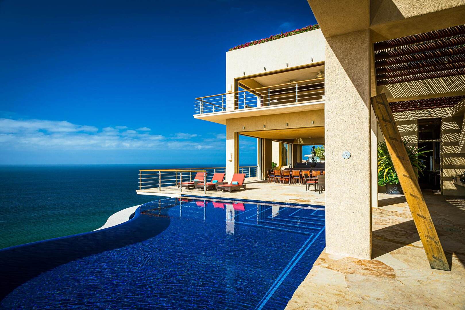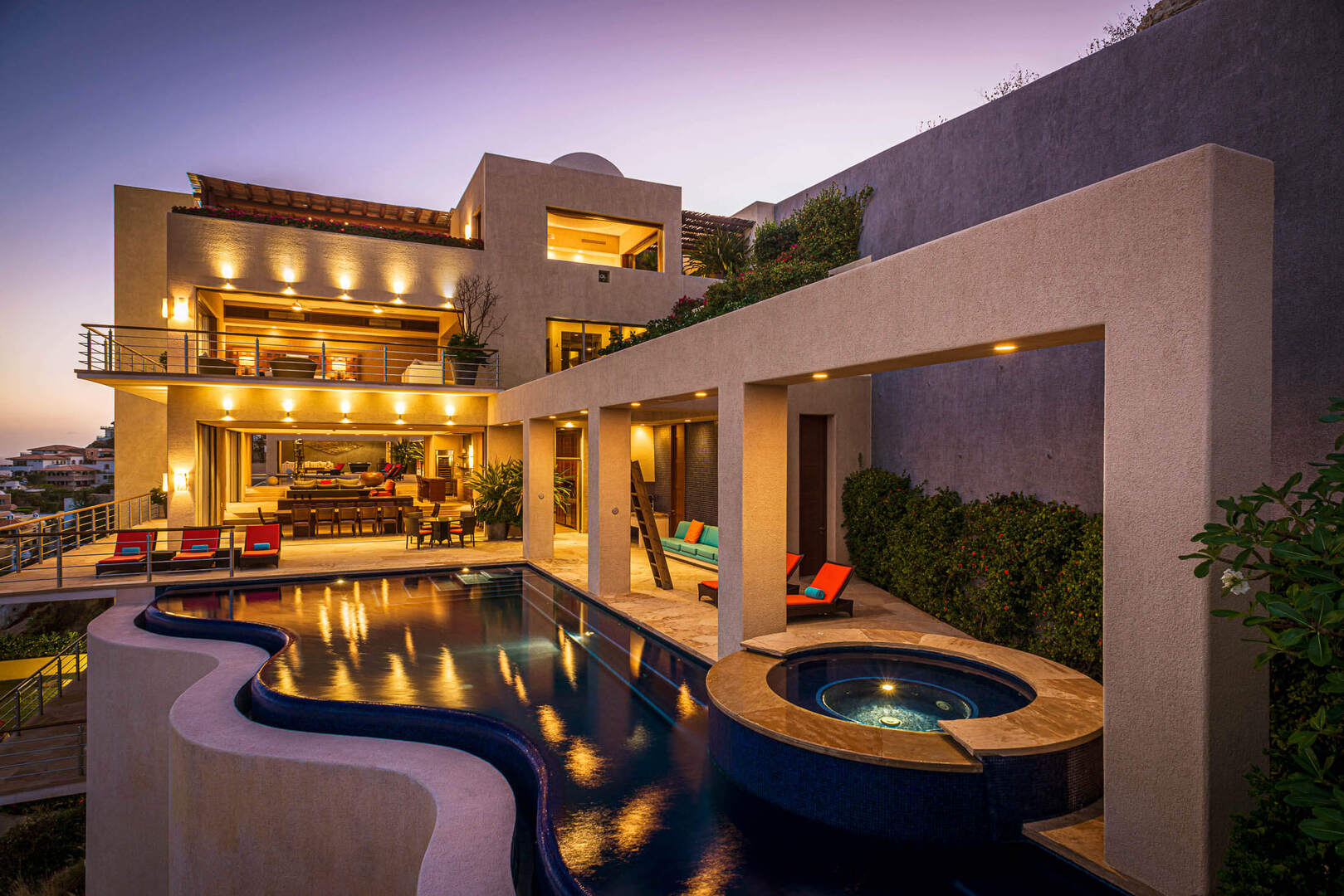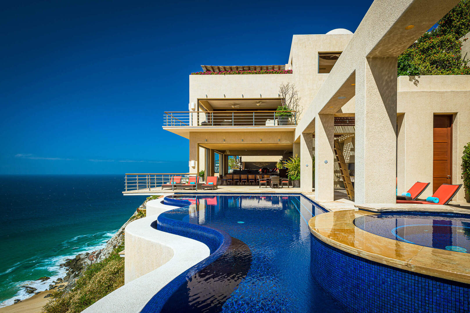 Vista Dream is one of the rare Los Cabos villas in Pedregal that pairs two infinity pools with an elevator-linked, cliff-carved five-level layout—while keeping every suite oriented to sweeping Pacific sunsets.