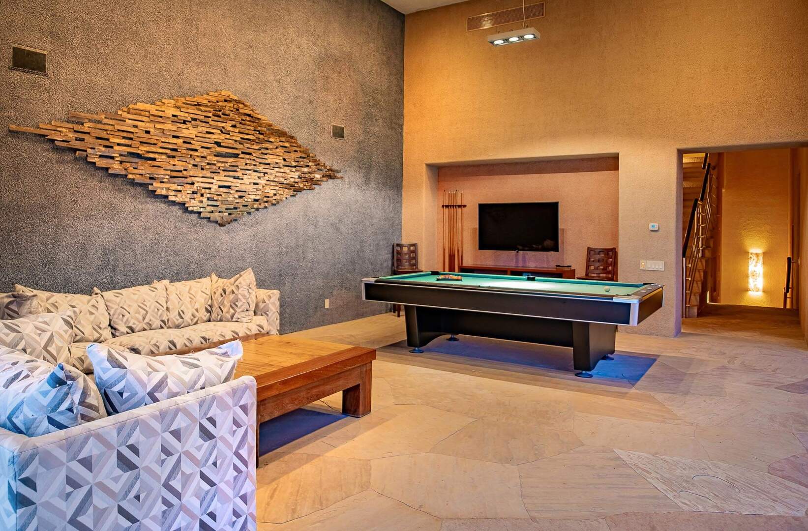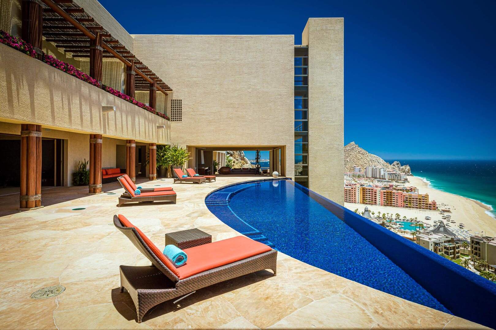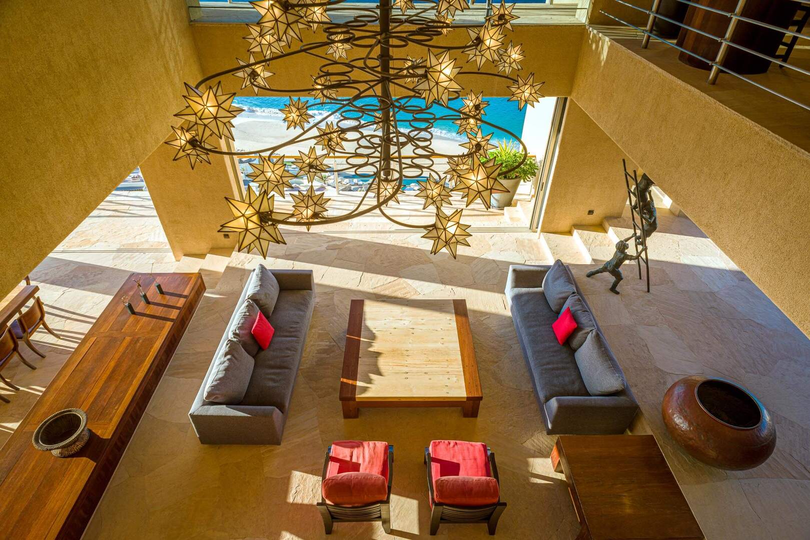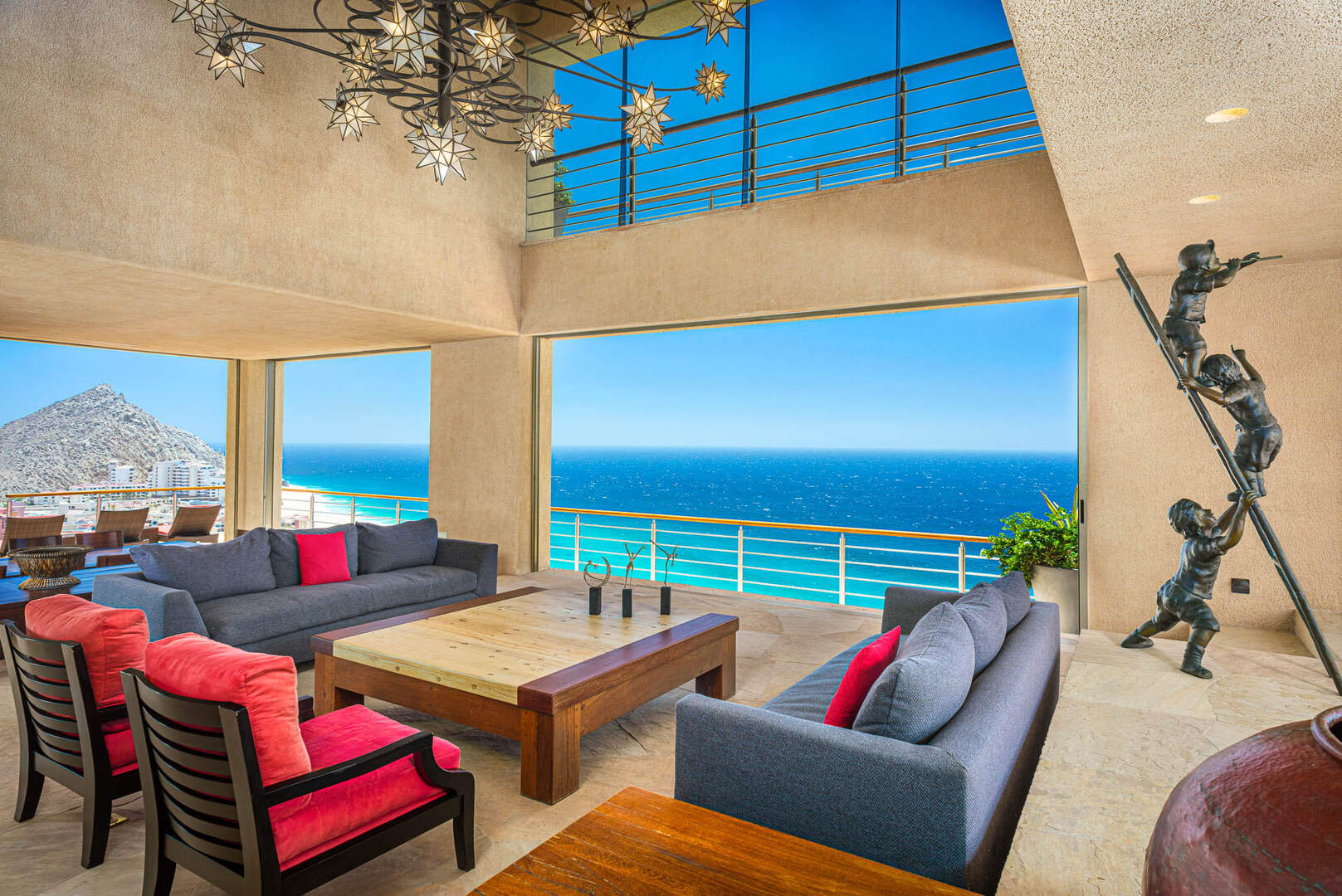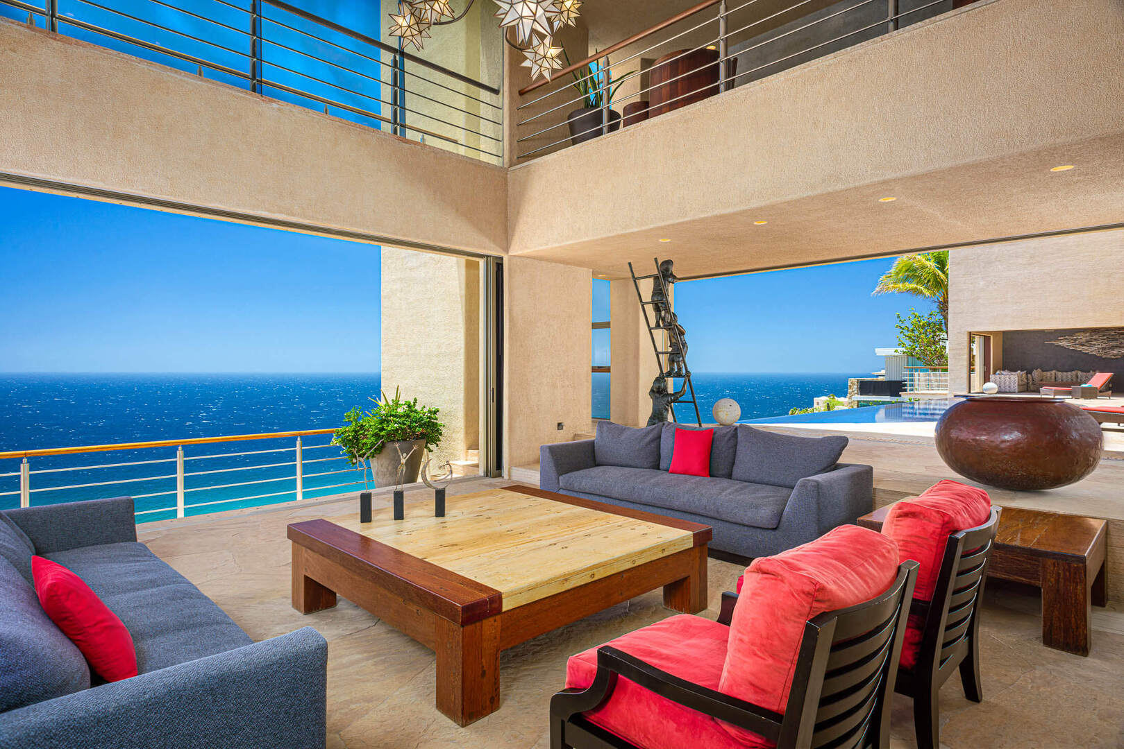 Set in the gated Pedregal community on the Pacific side of Cabo San Lucas, this five-level residence is designed for the kind of days that start with coffee on a terrace and end with the last ember of sunset glowing beyond the horizon. From nearly every angle—balconies, decks, glass-walled lounges—you’re pulled toward the ocean, with the Waldorf Astoria Los Cabos Pedregal sitting below along the beach as a landmark you can spot from your perch.