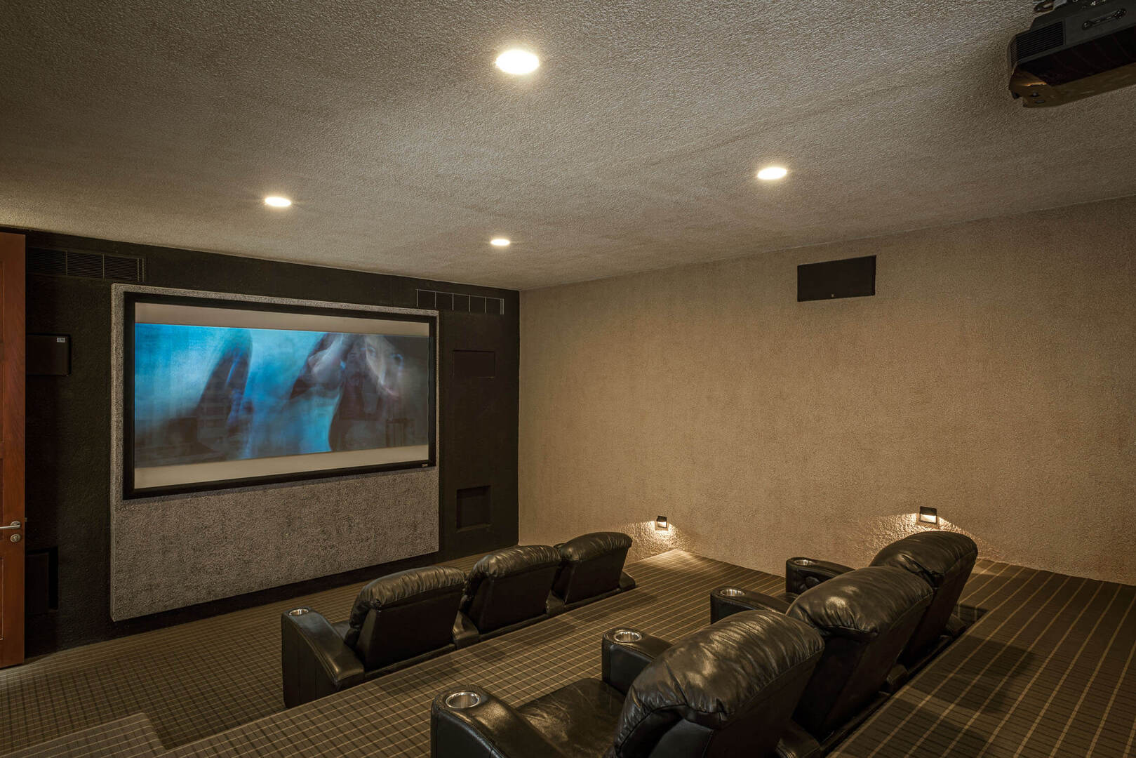 When the day shifts toward play, you have a dedicated fitness room, billiards, and a theater anchored by a 112-inch screen with reclinable seating—perfect for movie nights after the beach. An elevator connects the levels, a quiet luxury that matters in a dramatic, vertical home like this.