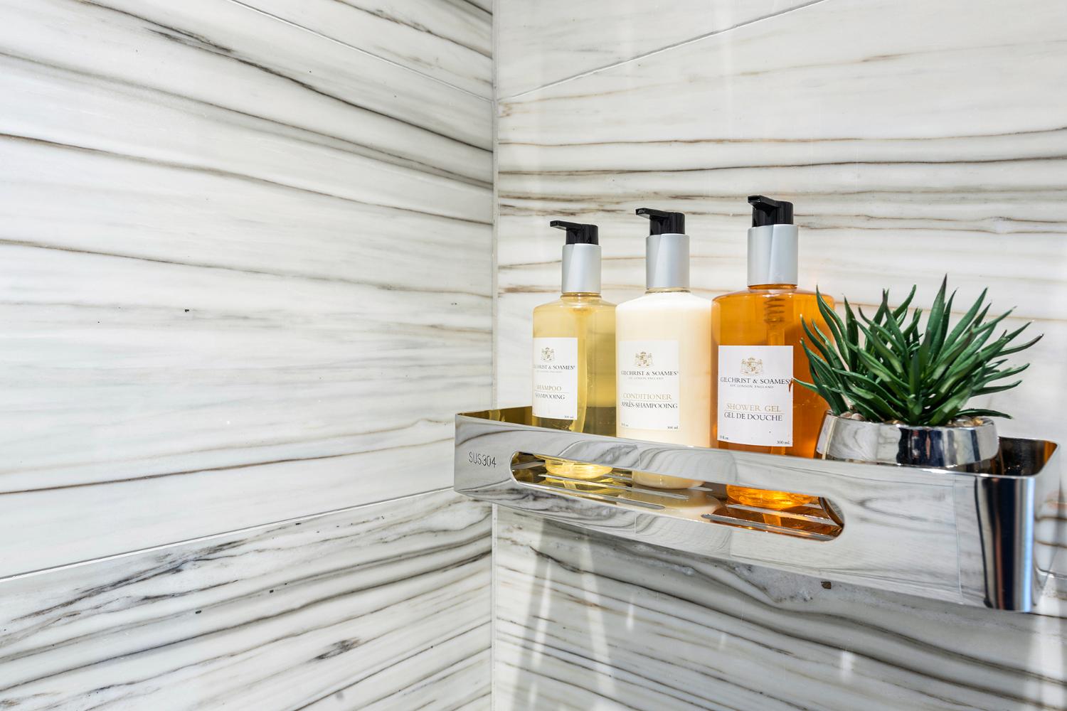 Design & comfort: Restoration Hardware pieces throughout; Tempur-Pedic sleep system; dimmable ambient lighting for a personalized atmosphere.