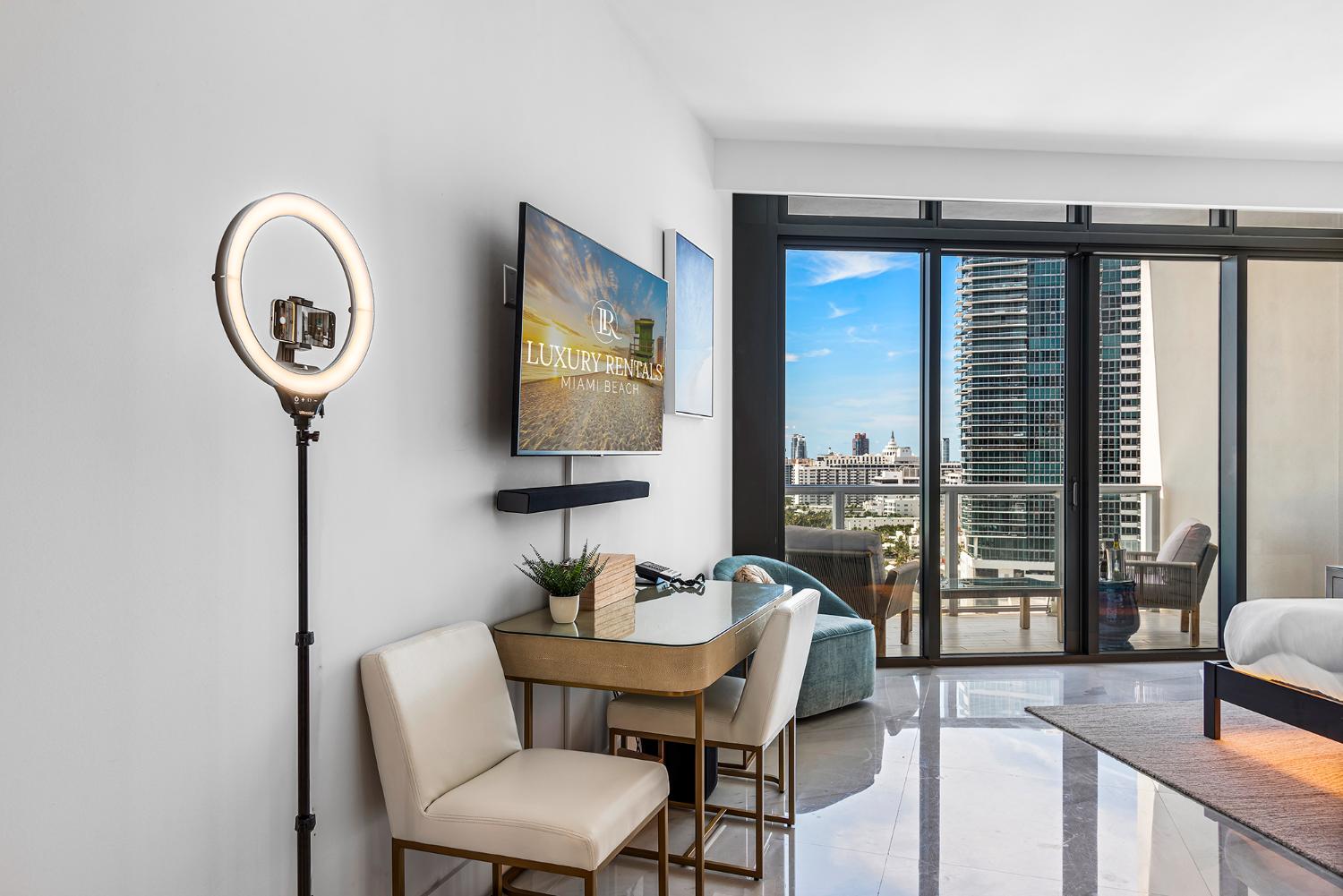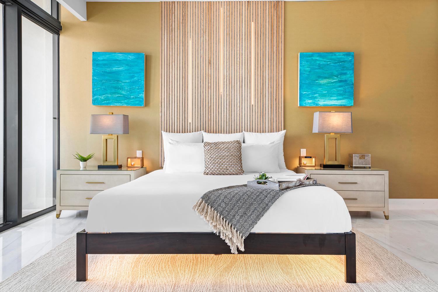 Slip into oceanfront ease at PH Private Studio Suite 1926, a privately owned studio set inside the iconic W South Beach at 2201 Collins Ave, Miami Beach. Here, Restoration Hardware furnishings meet a clean, modern palette; two original works by a celebrated Laguna Beach artist (with a New York gallery) add personality and a true sense of place. Wind down on a top-tier Tempur-Pedic® mattress, with softly dimmable headboard and under-bed lighting to set exactly the mood you want.