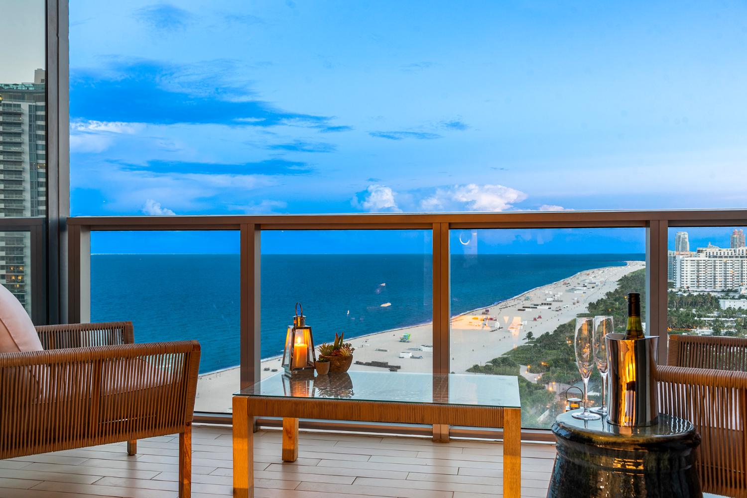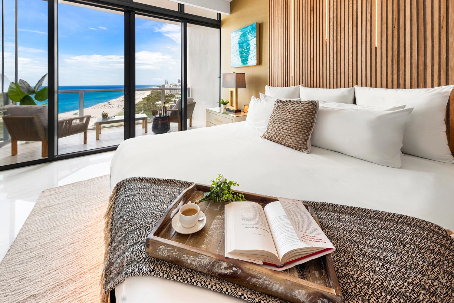 Wake to the hush of the Atlantic and step onto your expansive balcony for breakfast with breathtaking beach views. Head downstairs to the state-of-the-art fitness center and stream a Peloton® cycling class, or stroll the Miami Beach Boardwalk and cool off with a dip in the ocean. By afternoon, choose your vibe: loungers by the pool or feet-in-the-sand on the direct-access beach. For lunch, wander to Ocean Drive for cocktails and people-watching, then return to your studio to refresh for the night ahead—anything from celebrity-chef dining to iconic Miami nightlife. Come home to a serene, high-floor sanctuary and recharge for tomorrow.