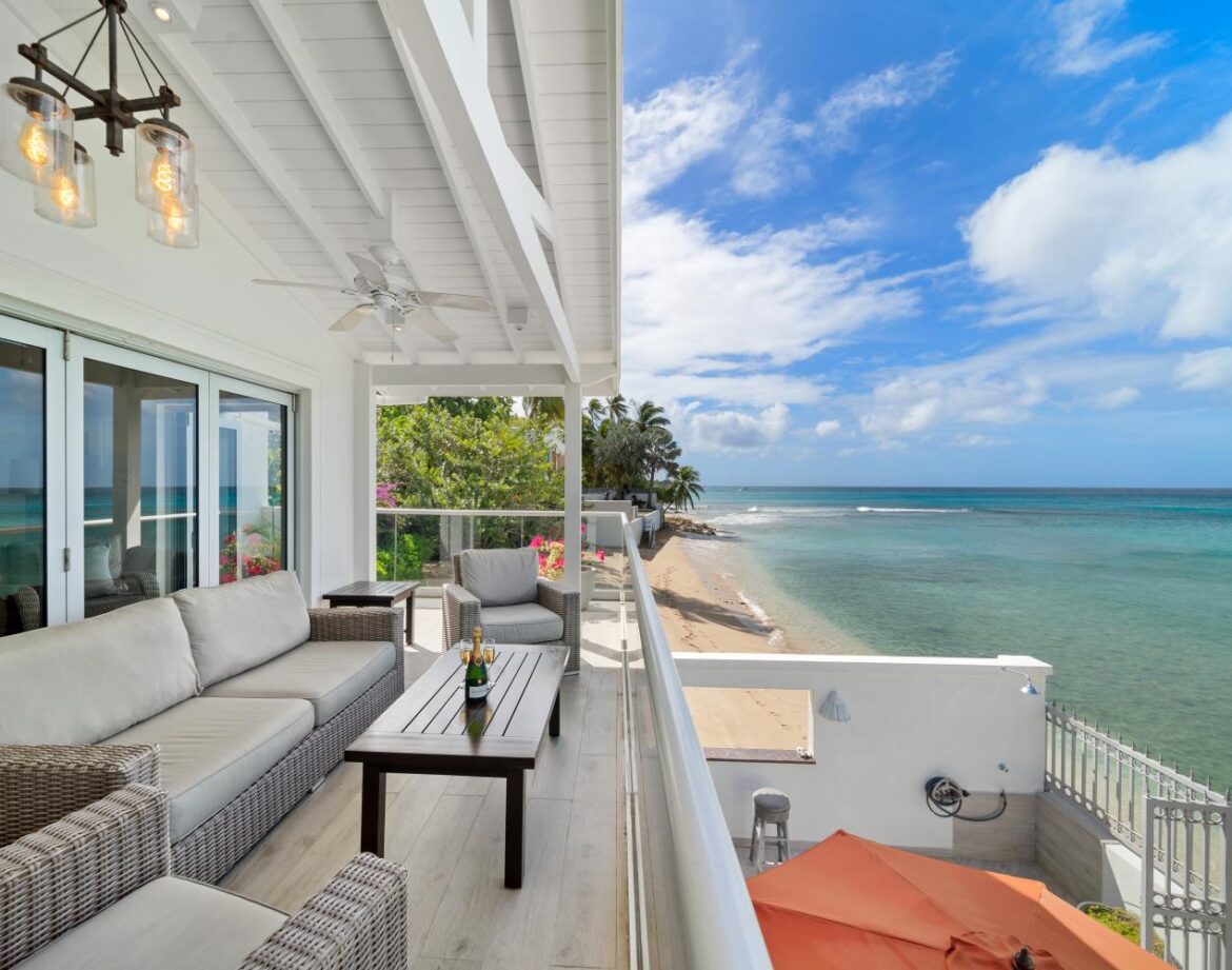 Sun loungers and a private plunge pool invite hours of bliss, and the large deck is partially covered for shaded relaxation. A private staircase descends straight to the sandy beach below, where visitors can swim, go snorkeling with sea turtles, or just enjoy the warm Bajan sun.